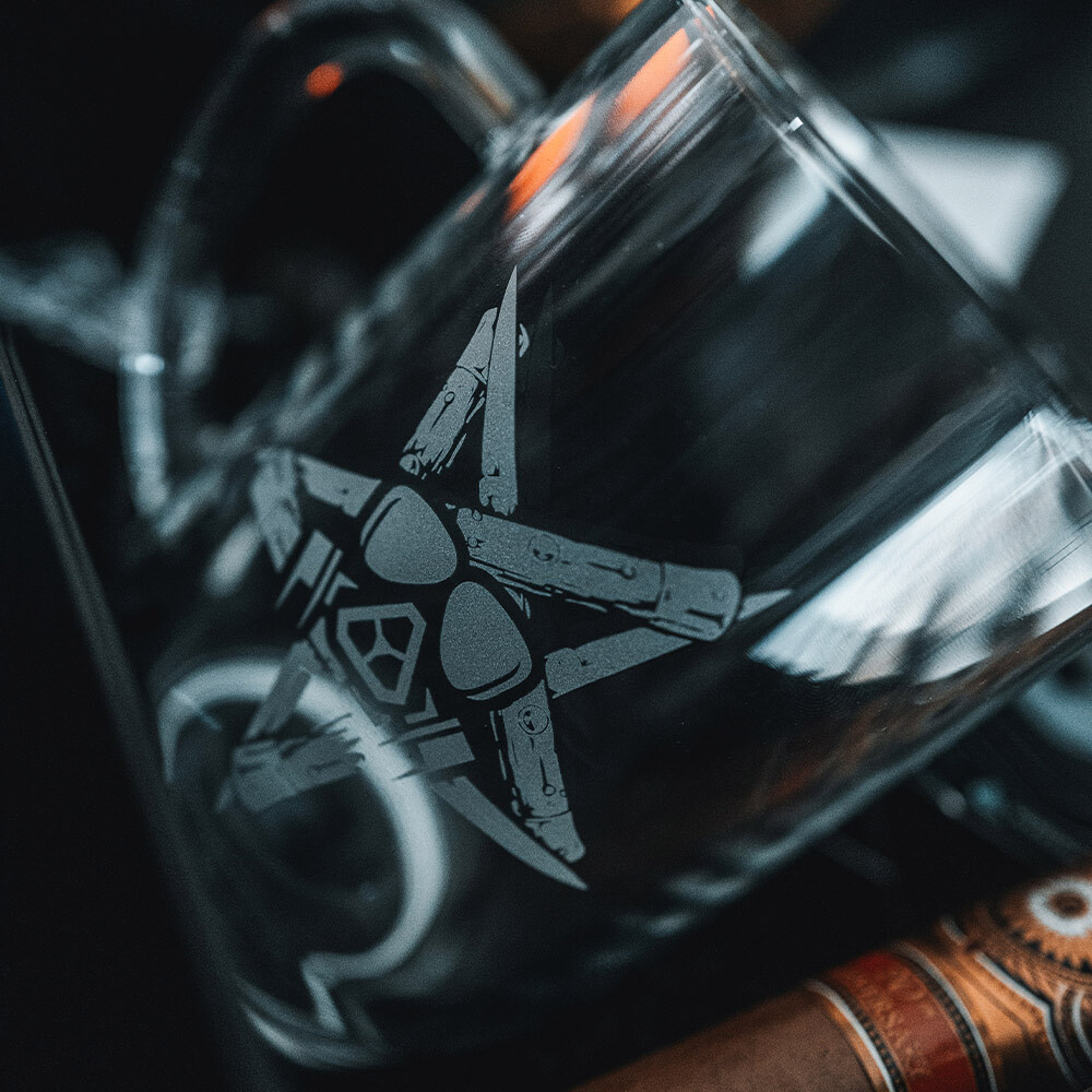 Elegantní skleněný půllitr s precizně gravírovaným logem Agraelus je ideální pro vychutnání piva nebo dodržování pitného režimu během dlouhých streamů.