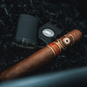 Na zastřižení doutníku v balíčku nalezneš clipper a na podpálení speciální tryskový zapalovač. Tady se myslelo na vše.