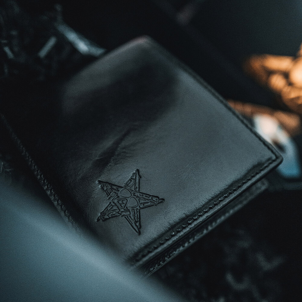 Tato luxusní kožená peněženka, vyrobená v České republice ve spolupráci s firmou VASKY, je skvostem mezi doplňky. Na přední části je vyraženo logo Agraelus v pentagramu, což dodává peněžence jedinečný vzhled, ale i exkluzivitu - vyrobeno bylo pouze 500 kusů.