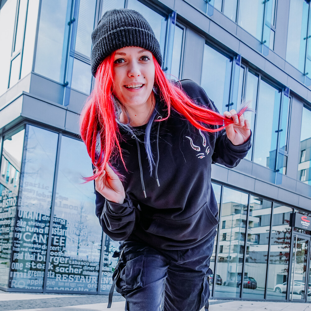 Kvalitní mikina unisexového střihu s velkou kapsou na přední straně a s kapucí se stahovací šňůrkou.