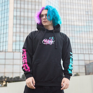 Kvalitní mikina unisexového střihu s velkou kapsou na přední straně a s kapucí se stahovací šňůrkou.