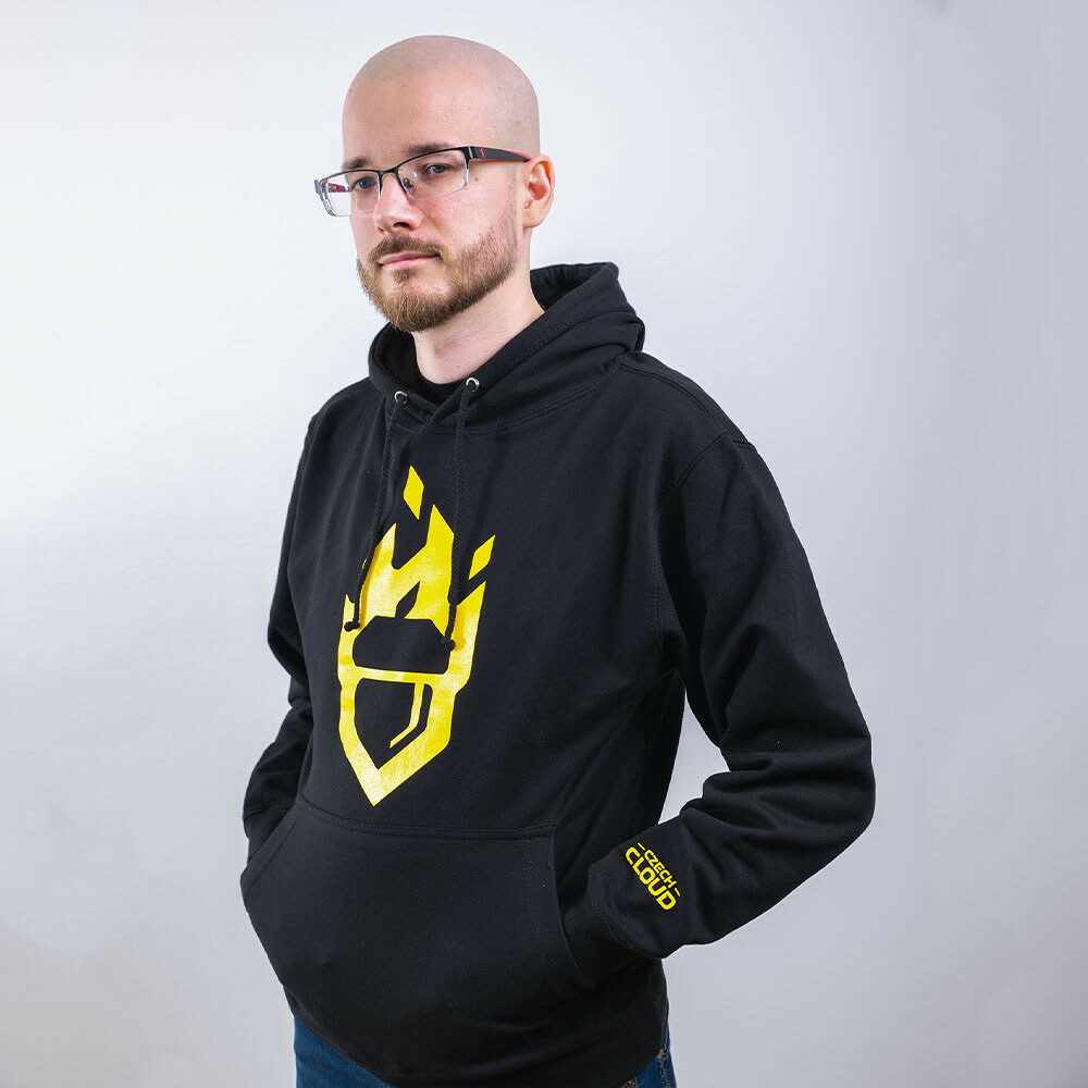 Kvalitní mikina unisexového střihu s velkou kapsou na přední straně a s kapucí se stahovací šňůrkou.