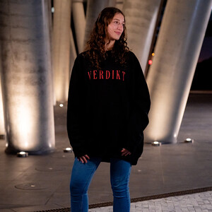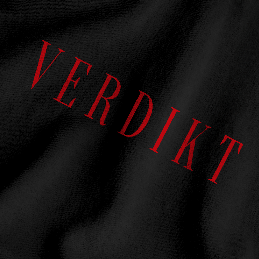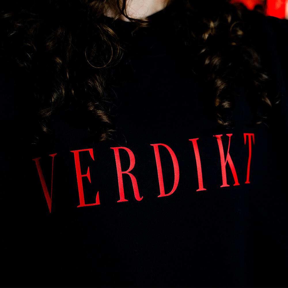 Černá mikina crewneck z limitované edice DeeThane nese odvážný nápis "VERDIKT" v červené barvě. Je to perfektní volba pro fanoušky, kteří chtějí vyjádřit svou podporu a spojit se s energickým stylem streamera, který je známý svou autenticitou.