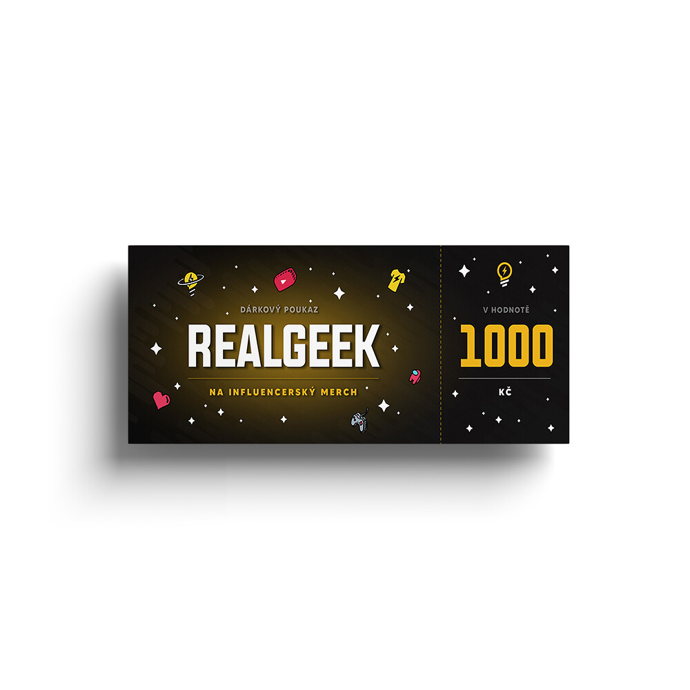 Vánoce se kvapem blíží a pošty už nestíhají doručovat balíčky. I přesto ale můžete darovat pěkný youtuberský dárek a mít co dát pod stromeček. Darujte tento poukaz na 1000 Kč a ten, kdo ho získá si sám bude moci vybrat ve které tričko, náramky, plakáty, nebo třeba mikinuho promění. Poukaz se dá využít na celý sortiment z e-shopu RealGeek.cz a je možné ho využít na několik produktů najednou. Platí po dobu 90 dní od zakoupení.