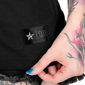 Tričko má tubulární střih bez švů po stranách a ramena zpevněná páskou.