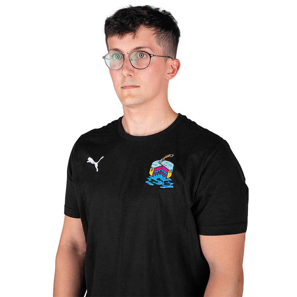Bavlněné tričko s výšivkou dortu  k příležitosti 18. narozenin esportové organizace eSuby.