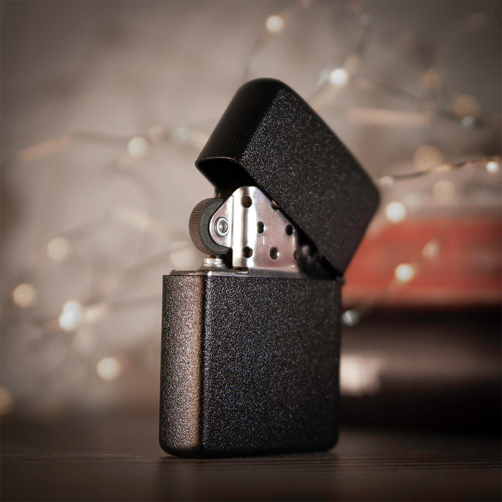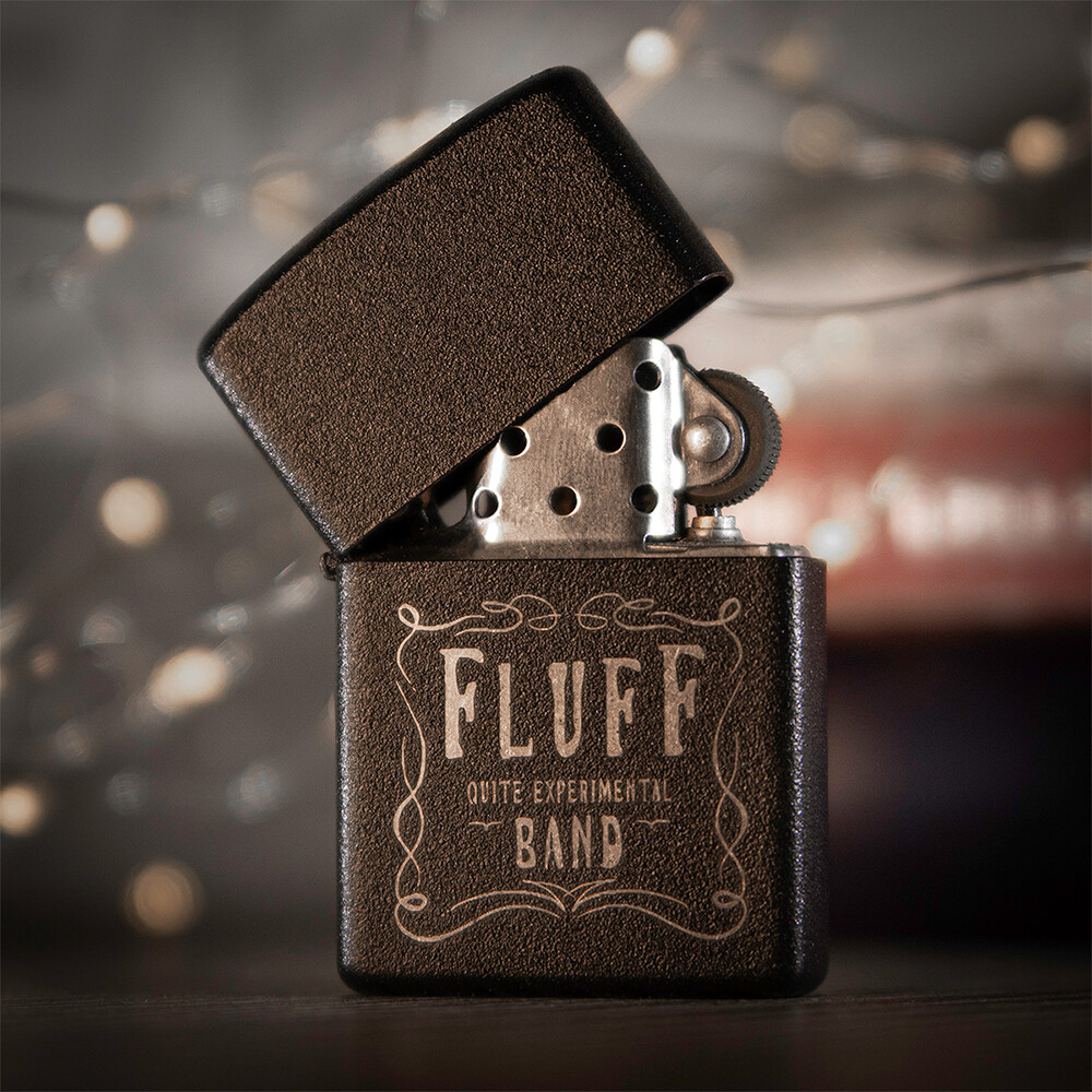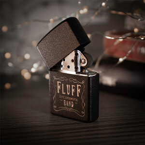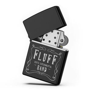 Kovový benzinový zapalovač Fluff o rozměrech 35 x 55 je černý a najdeš na něm krásné gravírování.