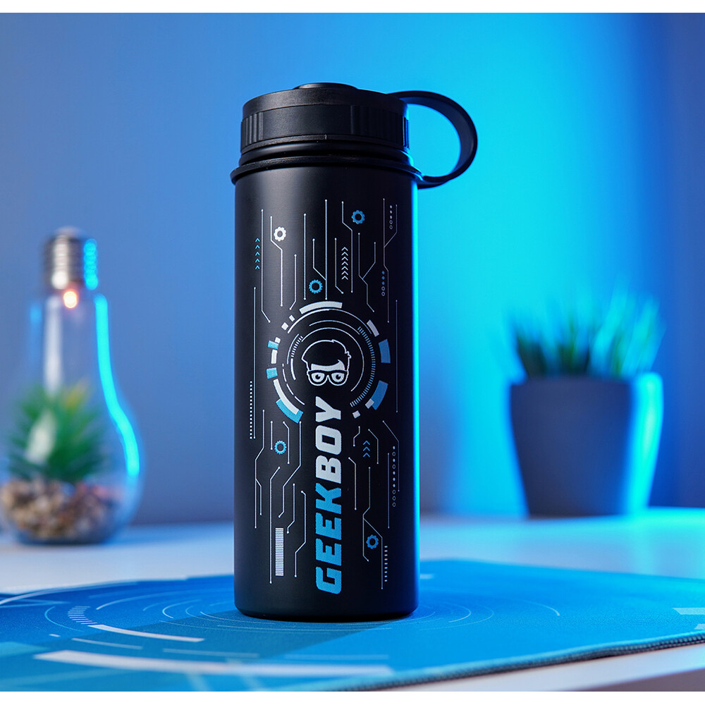 Nerezová láhev GeekBoy s objemem 520ml s plastovým zavíráním je ideální doplněk do školy. Lahev je odolná proti vodě a slabým kyselinám.