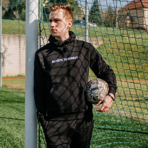 Mikina je vyrobená ze směsi bavlny (80%) a polyesteru (20%) s gramáží 280 g/m².