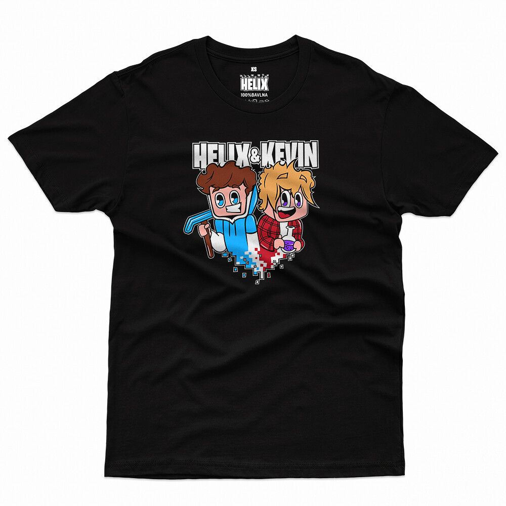 Přivítejte Helixovu novou kolekci! Tentokrát však není sám, ale na pomoc mu přišel jeho věrný parťák z videí, Kevin. Potisk je inspirovaný hrami Roblox a Minecraft, které Helix natáčí.