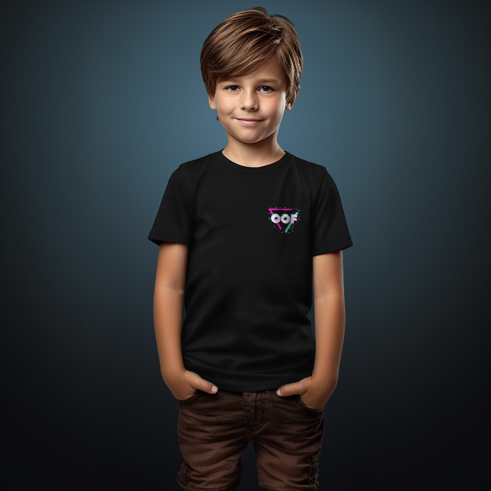Pořiďte svým malým fanouškům dětské tričko House Glitch, ozdobené barevným logem OOF.