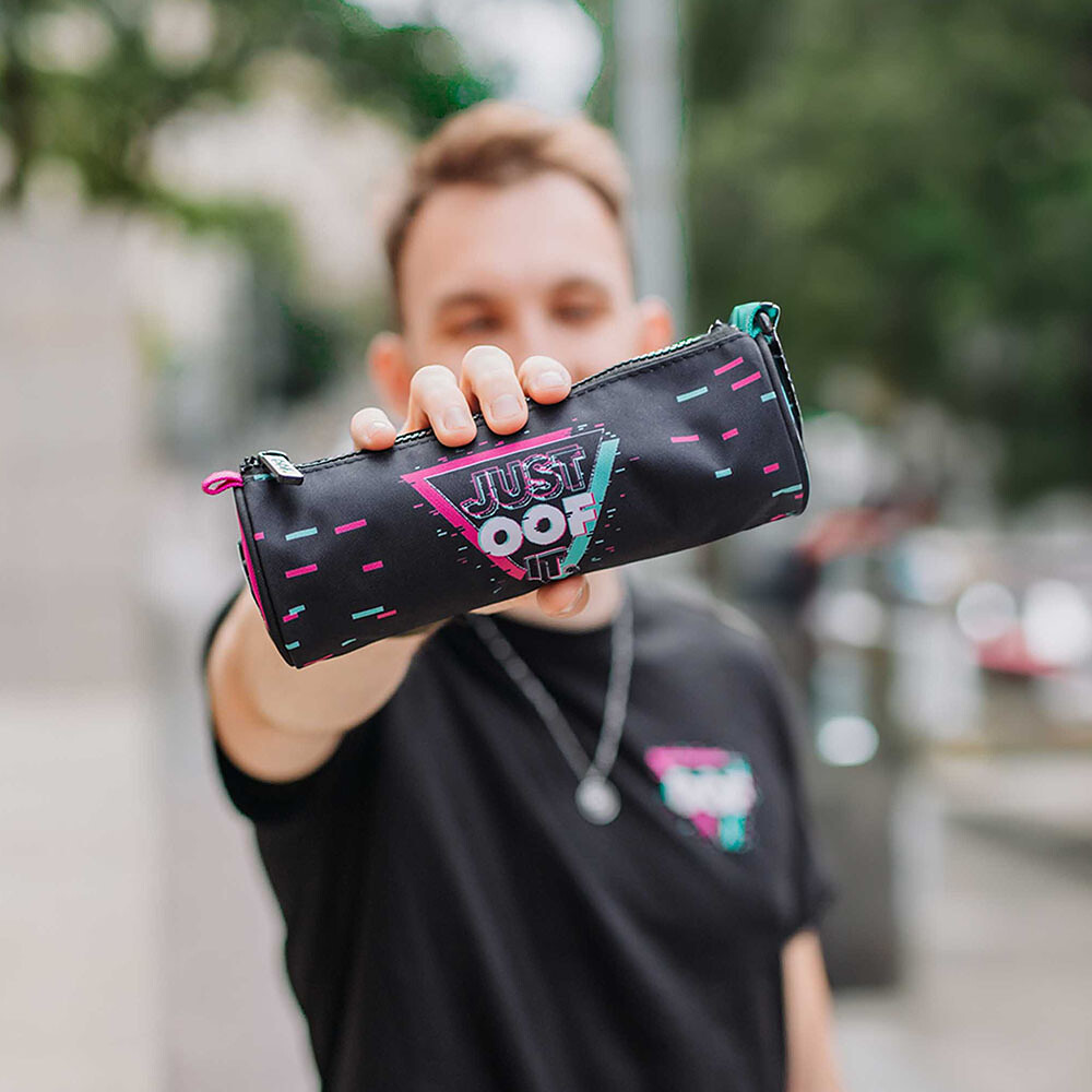 Penál je ve stylu pouzdra, které má kulatý průřez a zapínání na zip v horní části. Na stranách penálu stranách najdeš stylový design tvého oblíbeného youtubera. Celý penál má rozměry 24 x 8 x 8 cm.