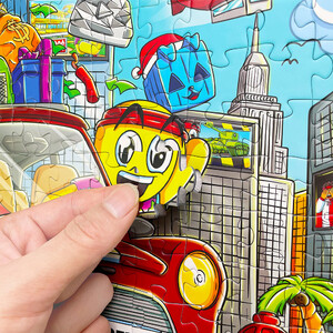 • Kvalitní materiály: Puzzle jsou vyrobeny z odolného "modrého" kartonu, který zajišťuje dlouhou životnost a trvanlivost. Jeho hlavní výhoda je ale jeho kompaktnost - po složení puzzlí je díky "modrému" kartonu možné je kamkoliv pohodlně přenést a budou vždy držet pohromadě.