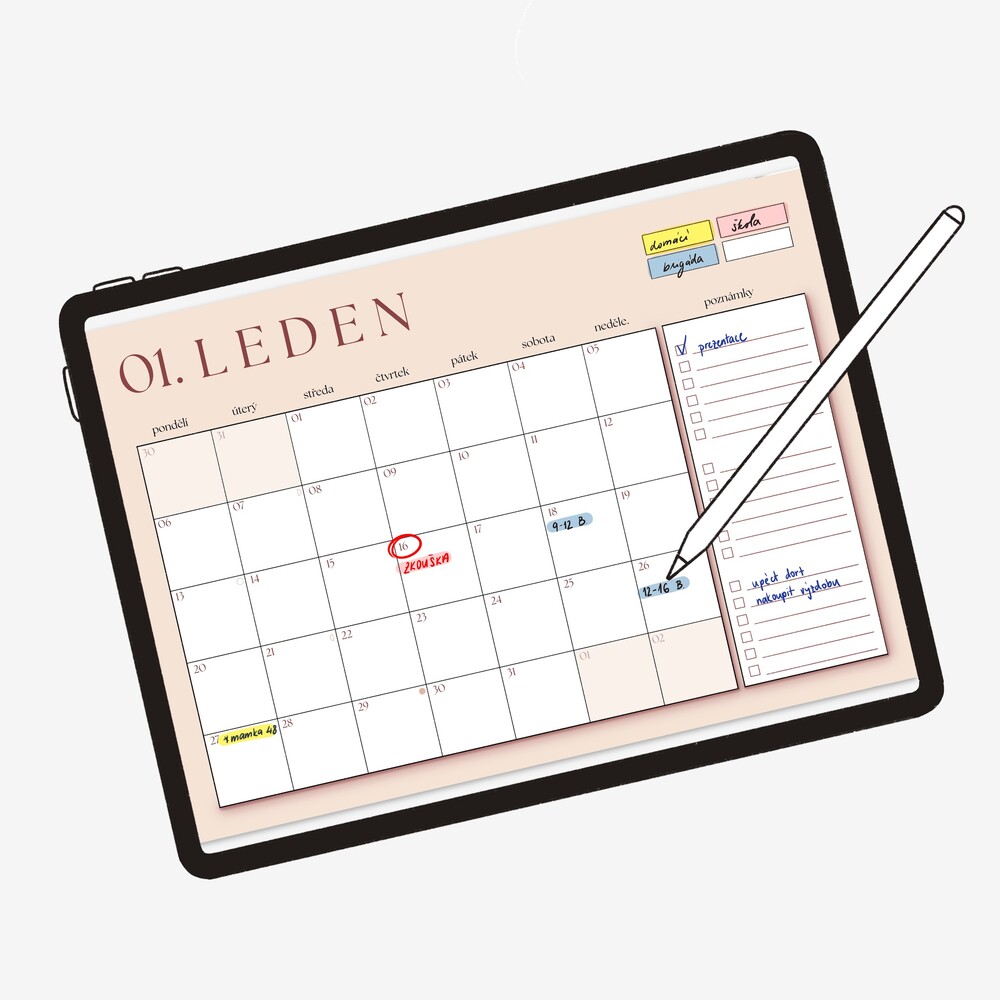 Kalendář si buď můžete vytisknout a někde pověsit, nebo ho můžete používat v elektronické formě (například v aplikaci GoodNotes pro iPady).