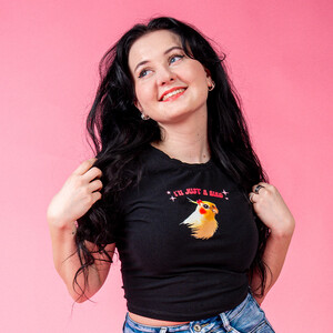 Crop top rozšiřuje oblíbenou Elvis kolekci o zábavný, ale zároveň stylový design s nápisem I'm just a girl bird, který jistě dobře znáš z internetových trendů.