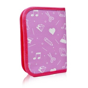 Penál má zapínání na zip a otevře se na dvě poloviny rozdělené menším oddělovačem. Na horní straně najdeš design v LEA stylu v krásných jasných barvách a celý penál má rozměry 22 x 11 x 8 cm.