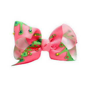 - "Slizová" mašlička s kombinací růžové a zelené a ozdobou z barevných kamínků. Kolekce #leamerchpodleleystas