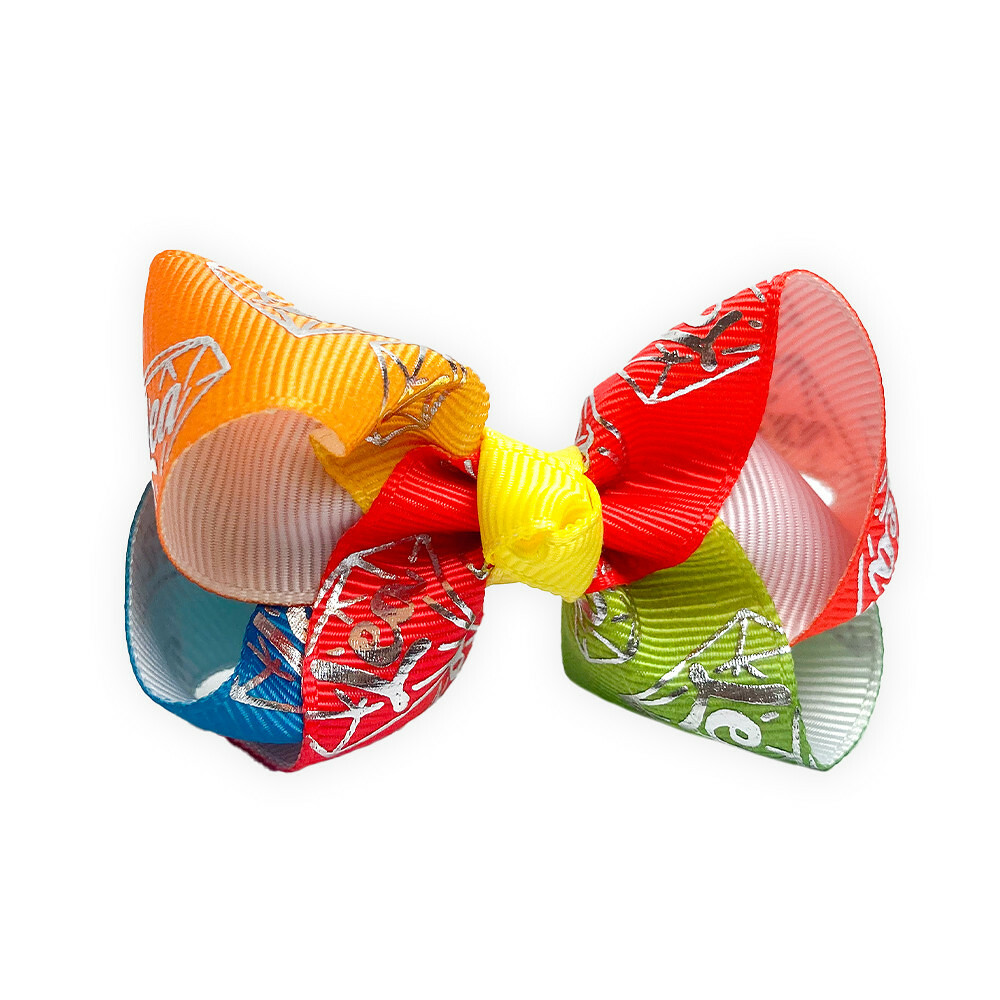 - Unikátní multibarevná mašle, kterou navrhla Lea a na které se nachází stříbrné nápisy!