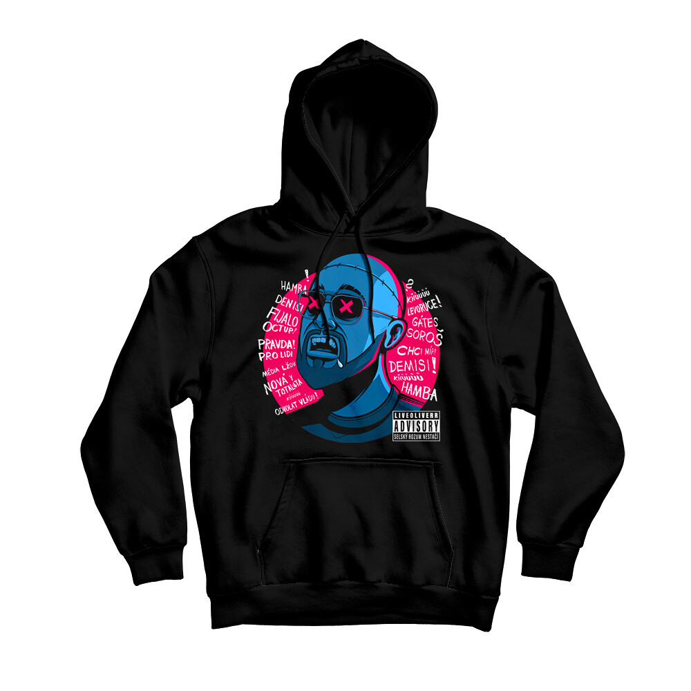 Kvalitní mikina unisexového střihu s velkou kapsou na přední straně a s kapucí se stahovací šňůrkou.