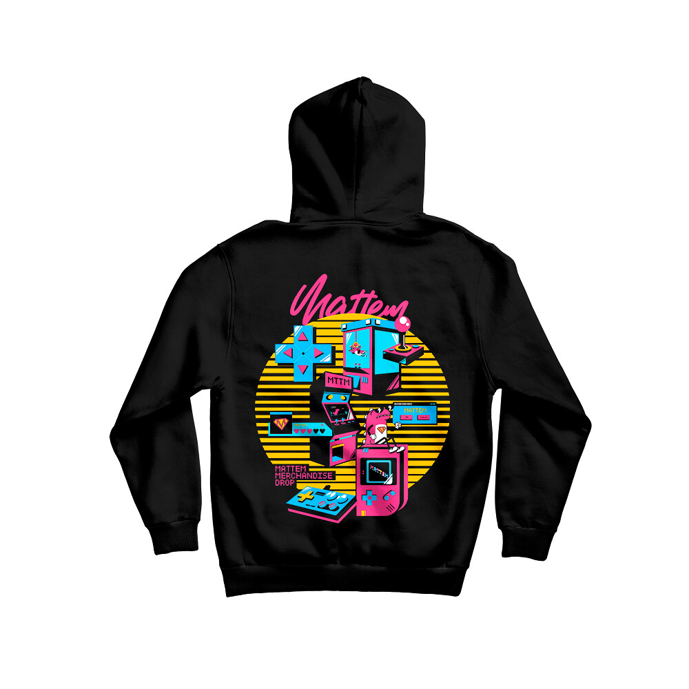 Tato černá mikina ve stylu retro 90s arcade přináší nostalgickou atmosféru videoher z 90. let s moderním komfortem. S kvalitním potiskem a klasickým střihem je ideální volbou pro všechny, kdo milují retro a pohodlný styl. A když si design pozorněji prohlédnete, naleznete na něm několik postaviček Dina.