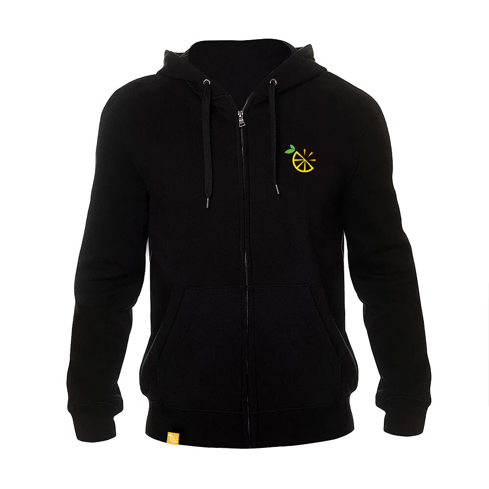 Nová černá rozepínací mikina s fresh designem a stylovou černou kapucí! Minimalistická výšivka, skrytý podpis za krkem, EXTRA POTISK NA ZÁDECH a žlutý textilní štítek se hodí ke každé příležitosti. Ideální citronový motiv nejen na léto.