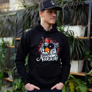 Pro naše starší fanoušky Nakashiho přinášíme tuto úžasnou mikinu. V černé barvě s motivem Nakashiho oblíbeného Kuřete v japonském stylu. Každý kousek merche přidává nositeli "+10 štěstí". Buďte styloví s Nakashi Ninjas mikinou!