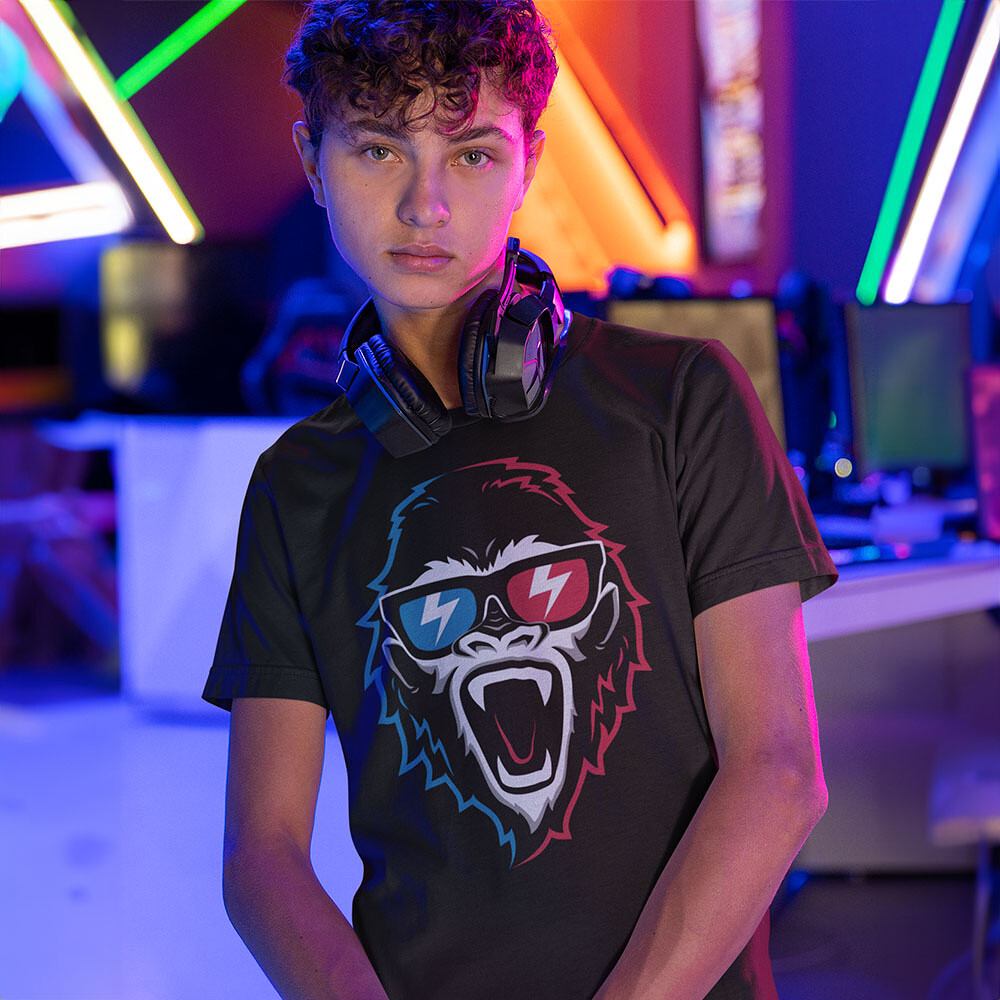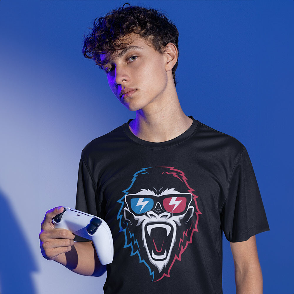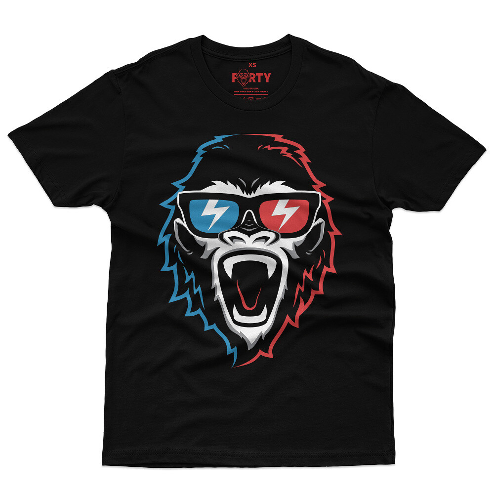 Černé tričko je nejoblíbenějším produktem nové kolekce oblečení od youtubera Portyho. Na designu trika najdete obrázek gorily, Portyho oblíbeného zvířete, tentokrát doplněného ikonickými barevnými 3D brýlemi, které jsou charakteristické pro jeho herní kanál "Porty Hraje".