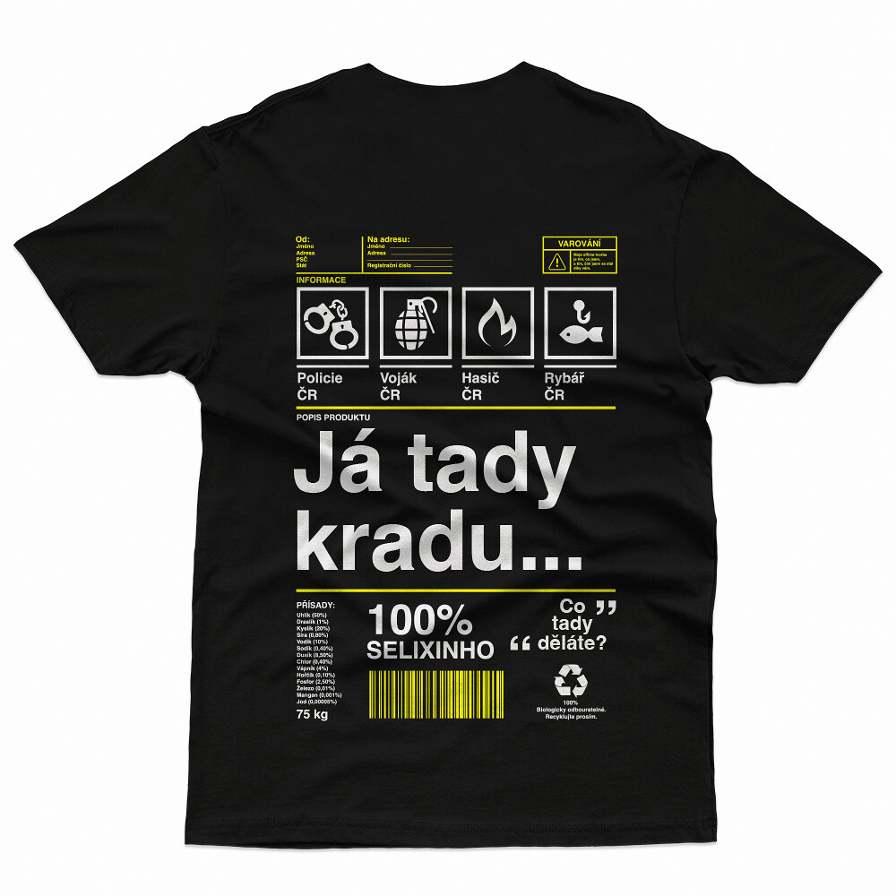 Do kolekce Selixinho jsme přidali toto cool černé tričko, který má podobný design jako na původní mikině, ale na zadním logu nyní najdeš legendární hlášku "Já tady kradu..". To prostě musíš mít!
