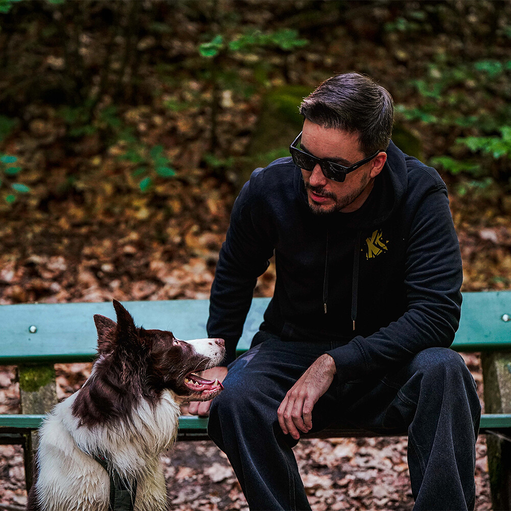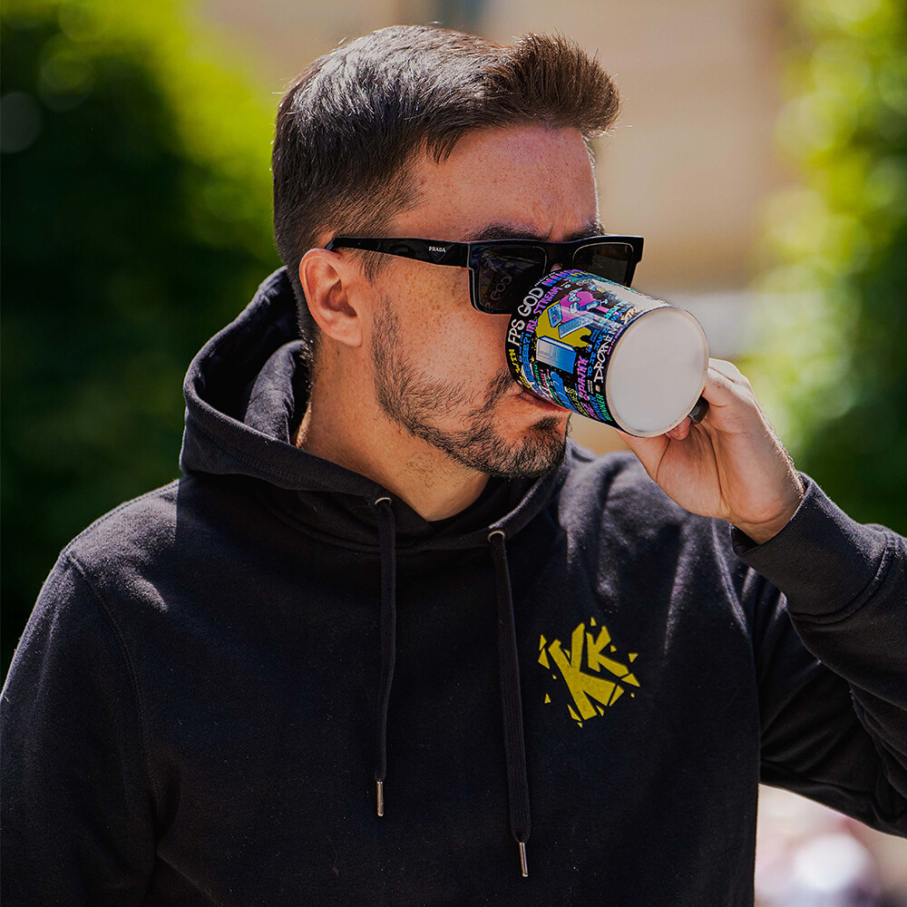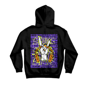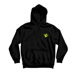 Mikina je vymazlené do posledního detailu, na zádech najdeš velkou barevnou grafiku, na přední straně je KK. Za krkem SpajKKův brand.