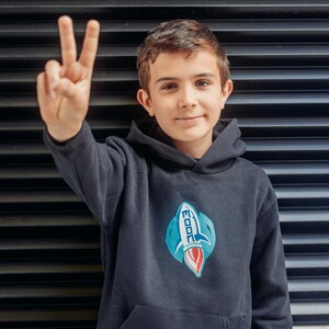 Představujeme vám dětskou mikinu Rocket, inspirovanou youtuberem Moon. Mikina má na zádech barevnou raketu mířící na měsíc a vepředu menší logo. Pro děti okolo 10 let je to skvělý kousek, který je spojuje s jejich oblíbeným youtuberem. Ideální na nošení ve škole nebo venku při zábavě.