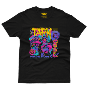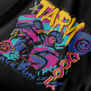 Tričko od Taryho přináší atmosféru nočního města plného neonových barev a graffiti. Tary drží GoPro a zachycuje se při parkouru – symbol energie a akce. Tento kousek je ideální pro všechny, kdo chtějí vyjádřit svůj cool městský styl a sdílet Taryho vášeň pro pohyb a kreativitu.