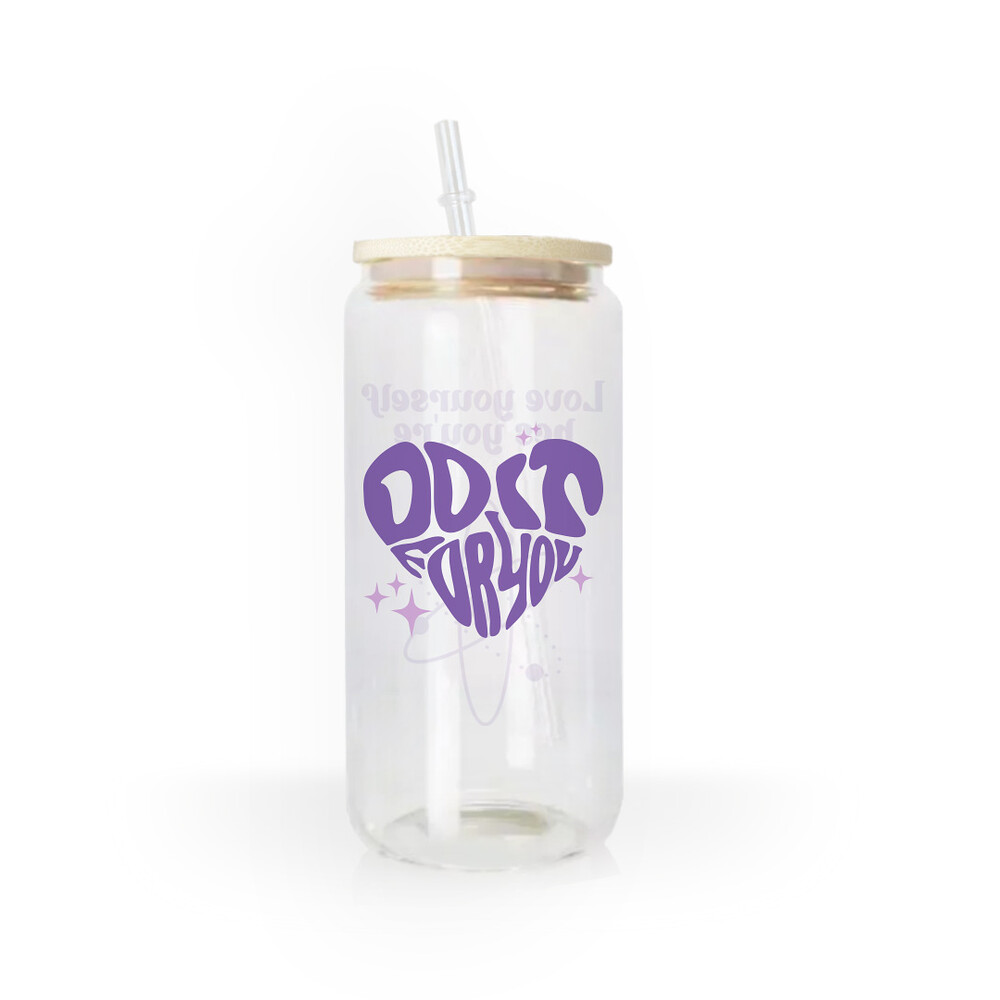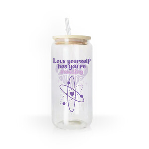 Stylová sklenička v designu Terysy kolekce You're the best s bambusovým víčkem a brčkem z tvrdého plastu. Objem skleničky je 450 ml.