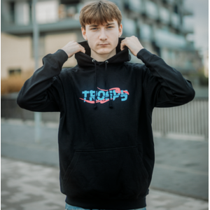 Kvalitní mikina unisexového střihu s velkou kapsou na přední straně a s kapucí se stahovací šňůrkou.