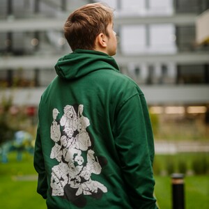 Kvalitní mikina unisexového střihu s velkou kapsou na přední straně a s kapucí se stahovací šňůrkou.